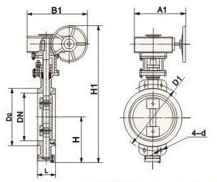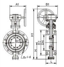金屬硬密封法蘭蝶閥結(jié)構(gòu)長(zhǎng)度標(biāo)準(zhǔn) 金屬硬密封蝶閥結(jié)構(gòu)長(zhǎng)度采用GB/T12221-2000國(guó)家標(biāo)準(zhǔn),閥門設(shè)計(jì)及制造技術(shù)要求標(biāo)準(zhǔn):GB/T12238的規(guī)定 密封實(shí)驗(yàn)采用GB/T13927的規(guī)定,蝶閥的法蘭尺寸按GB/T9113-2000標(biāo)準(zhǔn)生產(chǎn),供下圖技術(shù)參數(shù): D343H 多層次硬密封蝶閥--主要連接及外形尺寸 公稱通徑 DN | 結(jié)構(gòu)長(zhǎng)度L | 外形尺寸(參考值) | 連接(標(biāo)準(zhǔn)值) | 參考 重量Dt343H | | H | Dt343H | PN0.6MPa | PN1.0MPa | | mm | inch | 短 | 長(zhǎng) | H1 | A1 | B1 | D | D1 | z-d | D | D1 | z-d | | 50 | 2 | 108 | 150 | 112 | 350 | 180 | 200 | 140 | 110 | 4-14 | 165 | 125 | 4-18 | 17 | | 65 | 5/2 | 112 | 170 | 115 | 370 | 180 | 200 | 160 | 130 | 4-14 | 185 | 145 | 4-18 | 20 | | 80 | 3 | 114 | 180 | 120 | 380 | 180 | 200 | 190 | 150 | 4-18 | 200 | 160 | 8-18 | 23 | | 100 | 4 | 127 | 190 | 138 | 420 | 180 | 200 | 210 | 170 | 4-18 | 220 | 180 | 8-18 | 25 | | 125 | 5 | 140 | 200 | 164 | 460 | 180 | 200 | 240 | 200 | 8-18 | 250 | 210 | 8-18 | 40 | | 150 | 6 | 140 | 210 | 175 | 555 | 270 | 280 | 165 | 225 | 8-18 | 285 | 240 | 8-22 | 47 | | 200 | 8 | 152 | 230 | 208 | 605 | 270 | 280 | 320 | 280 | 8-18 | 340 | 295 | 8-22 | 60 | | 250 | 10 | 165 | 250 | 243 | 680 | 270 | 280 | 375 | 335 | 12-18 | 395 | 350 | 12-22 | 95 | | 300 | 12 | 178 | 270 | 283 | 800 | 380 | 420 | 440 | 395 | 12-22 | 445 | 400 | 12-22 | 124 | | 350 | 14 | 190 | 290 | 310 | 835 | 380 | 420 | 490 | 445 | 12-22 | 505 | 460 | 16-22 | 181 | | 400 | 16 | 216 | 310 | 340 | 915 | 450 | 470 | 540 | 495 | 16-22 | 565 | 515 | 16-26 | 260 | | 450 | 18 | 222 | 330 | 380 | 960 | 480 | 490 | 595 | 550 | 16-22 | 615 | 565 | 20-26 | 338 | | 500 | 20 | 229 | 350 | 410 | 1020 | 480 | 490 | 645 | 600 | 20-22 | 670 | 620 | 20-26 | 360 | | 600 | 24 | 267 | 390 | 470 | 1225 | 480 | 660 | 755 | 705 | 20-26 | 780 | 725 | 20-30 | 540 | | 700 | 28 | 292 | 430 | 550 | 1355 | 640 | 660 | 860 | 810 | 24-26 | 895 | 840 | 24-30 | 580 | | 800 | 32 | 318 | 470 | 640 | 1470 | 640 | 660 | 975 | 920 | 24-30 | 1015 | 950 | 24-33 | 845 | | 900 | 36 | 330 | 510 | 710 | 1545 | 750 | 860 | 1075 | 1020 | 24-30 | 1115 | 1050 | 28-33 | 1050 | | 1000 | 40 | 410 | 550 | 770 | 1795 | 850 | 860 | 1175 | 1120 | 28-30 | 1230 | 1160 | 28-36 | 1500 | | 1200 | 48 | 470 | 630 | 890 | 1965 | 850 | 900 | 1405 | 1340 | 32-33 | 1455 | 1380 | 32-39 | 2000 |