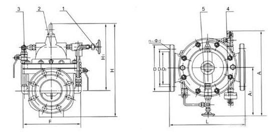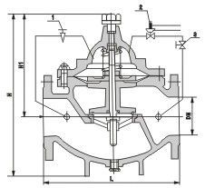 當(dāng)水泵停止工作時(shí),電磁導(dǎo)閥先關(guān)閉,主閥控制室停止排水,控制室壓力升高,主閥開(kāi)始關(guān)閉。當(dāng)關(guān)閉至90%時(shí),主閥上部行程開(kāi)關(guān)輸出停泵信號(hào),水泵停止運(yùn)轉(zhuǎn)。此時(shí)下游回水經(jīng)單向閥進(jìn)入主閥控制室,控制室壓力升高,主閥被關(guān)閉 一、800X壓差旁通閥--概述