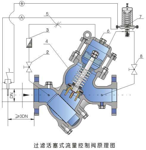 三、YQ98002型過濾活塞式安全泄壓閥--特點: 1.畢托管向極敏感的限流導(dǎo)閥傳遞壓信號, 無孔板孔口節(jié)流, 無壓力損失, 節(jié)能. 2.限流導(dǎo)閥中有極靈敏的彈簧對流量進行調(diào)節(jié), 操作簡單而且準確. 3.Y形寬體閥腔,流阻小.抗汽蝕性強. 日介質(zhì)自身壓力自控, 無需外供驅(qū)動源. 5.主閥體的進口法蘭與閥座之間設(shè)了過濾器, 節(jié)省投資成本和安裝費用. 6.內(nèi)外表面均噴澮環(huán)保涂層.確保產(chǎn)品的防府蝕及安全。 四、YQ98002型過濾活塞式安全泄壓閥--技術(shù)參數(shù):