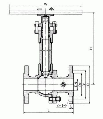 DQ41F-16P-100不銹鋼低溫法蘭球閥--主要連接尺寸參數(shù) 1.6Mpa | 產(chǎn)品型號 | 公稱通徑 DN | PN1.6MPa | WT (kg) | | L | D | D1 | D2 | b | Z-Φd | H | W | DQ41F-16C DQ41F-16P DQ641F-16C DQ641F-16P DQ941F-16C DQ941F-16P | 15 | 130 | 95 | 65 | 45 | 14 | 4-Φ14 | 178 | 140 | 3 | | 20 | 140 | 105 | 75 | 55 | 14 | 4-Φ14 | 184 | 160 | 4 | | 25 | 150 | 115 | 85 | 65 | 14 | 4-Φ14 | 195 | 180 | 5 | | 32 | 165 | 135 | 100 | 78 | 16 | 4-Φ18 | 280 | 250 | 9 | | 40 | 180 | 145 | 110 | 85 | 16 | 4-Φ18 | 280 | 300 | 11 | | 50 | 203 | 160 | 125 | 100 | 16 | 4-Φ18 | 300 | 350 | 15 | | 65 | 222 | 180 | 145 | 120 | 18 | 4-Φ18 | 330 | 350 | 19 | | 80 | 241 | 195 | 160 | 135 | 20 | 8-Φ18 | 360 | 400 | 27 | | 100 | 305 | 215 | 180 | 155 | 20 | 8-Φ18 | 400 | 500 | 38 | | 125 | 356 | 245 | 210 | 185 | 22 | 8-Φ18 | 430 | 600 | 58 | | 150 | 394 | 280 | 240 | 210 | 24 | 8-Φ23 | 500 | 800 | 81 | | 200 | 457 | 335 | 295 | 265 | 26 | 12-Φ23 | 680 | 800 | 95 | | 250 | 533 | 405 | 355 | 320 | 30 | 12-Φ25 | 790 | 1300 | 140 |
