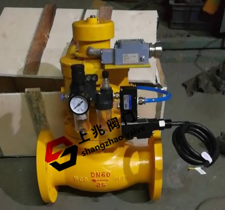 上海上兆閥門制造有限公司提供的緊急切斷閥廣泛用于石油、天然氣、化工、電力、冶金、國防科技、礦山、船舶、食品、醫(yī)藥、供水、暖通、城建等重要領域。 0QDQ421F電磁動緊急切斷閥--用途: 0QDQ421F電磁動緊急切斷閥分單作用式與雙作用式,能夠?qū)崿F(xiàn)遠距離控制啟閉,啟用僅需按一下控制按鈕,其余事項均在指定時間內(nèi)自動完成,單鈕安全啟閉設置急停按鈕,確保操作安全,如加裝遠程信號反饋系統(tǒng),可于遠距離控制室直接獲悉閥門運行狀態(tài)。 0QDQ421F電磁動緊急切斷閥作用原理及結(jié)構(gòu)說明: 1、單作用式工作原理:閥門在無外壓力操作情況下,閥瓣處于常閉狀態(tài),在管道或貯罐系統(tǒng)上使用時,靠電源和氣源的壓力將閥門打開,在氣路的壓力使用下閥門處于開啟狀態(tài),當需要關閉閥門時,可將電源或氣源壓力泄掉,閥門即自動關。 2、閥瓣關閉時,壓力是依靠打開泄壓閥來實現(xiàn)。 3、常開式可采用單作用代替或按要求訂做。 4、雙作用式工作原理:當控制器按事先編好的程序?qū)δ硞€電磁換向閥輸出一個電信號,該電磁換向閥動作,使帶壓儀表氣源通過電磁換向閥的切換進入氣動執(zhí)行機構(gòu)的氣缸下腔推動活塞向上運動,活塞帶動閥桿,閥桿提動閥芯使閥門開啟,切斷換向閥電信號,使活塞反向運動使閥門關閉,這種閥門配置稱為常閉式。反之,要做成常開式只需在電磁換向閥與氣動執(zhí)行機構(gòu)的連接方式變換一下就能實現(xiàn).