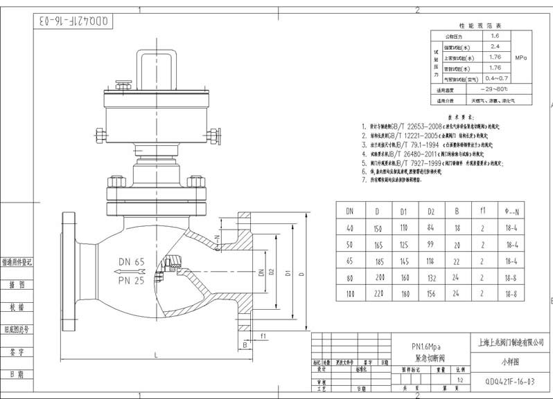 氣動緊急切斷閥小樣圖