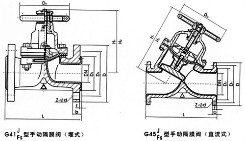 三、G41F46襯氟隔膜閥外形連接尺寸及重量: