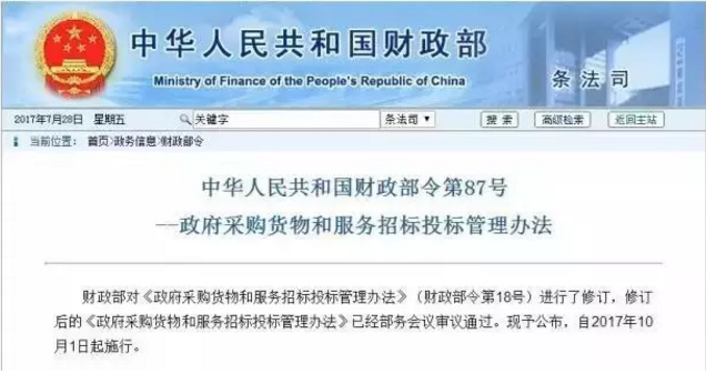 2017年10月1日起施行“最低價中標(biāo)”說再見! 近日,財政部印發(fā)財政部令87號《政府采購貨物和服務(wù)招標(biāo)投標(biāo)管理辦法》,該《辦法》提出:評標(biāo)委員會認(rèn)為投標(biāo)人的報價明顯低于其他通過符合性審查投標(biāo)人的報價,有可能影響產(chǎn)品質(zhì)量或者不能誠信履約的,應(yīng)當(dāng)要求其在評標(biāo)現(xiàn)場合理的時間內(nèi)提供書面說明,必要時提交相關(guān)證明材料;投標(biāo)人不能證明其報價合理性的,評標(biāo)委員會應(yīng)當(dāng)將其作為無效投標(biāo)處理。 ![]() 該《辦法》有如下幾點,需要大家注意: 第一、該投標(biāo)價格與其他投標(biāo)人相比的價格,參照對象是“其他投標(biāo)人的價格”,此處不是大家常說的“成本價”,因為“成本價”有時的確很難直接判定,爭議也很大,直接與“其他標(biāo)人的價格”相對比,易操作,例如:若九個投標(biāo)人,八個投標(biāo)人報價為1億左右,另一位若是8000萬,可能就需要進(jìn)行“合理性”解釋。 第二、價格明顯低于其他投標(biāo)人的報價情況下,有可能影響產(chǎn)品質(zhì)量或者不能誠信履約。這里用詞是“有可能”,可以認(rèn)為若價格過低,都存在“有可能”,所以免不了要澄清。 第三、應(yīng)當(dāng)要求其在評標(biāo)現(xiàn)場合理的時間內(nèi)提供書面說明,必要時提交相關(guān)證明材料。這里要注意的是“評標(biāo)現(xiàn)場合理的時間”,這個意義重大,避免了場外人情,也是說“投標(biāo)”是否有效,當(dāng)場決定。 第四、投標(biāo)人不能證明其報價合理性的,評標(biāo)委員會應(yīng)當(dāng)將其作為無效投標(biāo)處理。這里用詞是“應(yīng)當(dāng)”,而不是“可以”,就是該《辦法》直接規(guī)定這種情況就是“無效投標(biāo)”。 目前,一些地方在招投標(biāo)中存在的“低價中標(biāo)”現(xiàn)象,導(dǎo)致在最低價中標(biāo)的競爭中,呈現(xiàn)良者退出和劣者胡來的困局。這已經(jīng)成為企業(yè)提升產(chǎn)品質(zhì)量的突出障礙,亟待治理和規(guī)范。而在基建和地產(chǎn)行業(yè)。最低價中標(biāo)往往使承建商無利可圖甚至賠本吆喝,承建商的應(yīng)對手段往往是工程停建、惡意拖欠薪酬等。最低價中標(biāo)往往從單純的經(jīng)濟(jì)糾紛,發(fā)酵成社會問題。 87號令要求有可能影響產(chǎn)品質(zhì)量或者不能誠信履約的報價提供說明或證明其合理性,勢必對最低價中標(biāo)的現(xiàn)象帶來一定遏制,“餓死同行、累死自己、坑死業(yè)主”現(xiàn)象有望得到改善! 中華人民共和國財政部令第87號 ——政府采購貨物和服務(wù)招標(biāo)投標(biāo)管理辦法 財政部對《政府采購貨物和服務(wù)招標(biāo)投標(biāo)管理辦法》(財政部令第18號)進(jìn)行了修訂,修訂后的《政府采購貨物和服務(wù)招標(biāo)投標(biāo)管理辦法》已經(jīng)部務(wù)會議審議通過。現(xiàn)予公布,自2017年10月1日起施行。 部長 肖捷 2017年7月11日 第一章 總 則 第一條 為了規(guī)范政府采購當(dāng)事人的采購行為,加強(qiáng)對政府采購貨物和服務(wù)招標(biāo)投標(biāo)活動的監(jiān)督管理,維護(hù)國家利益、社會公共利益和政府采購招標(biāo)投標(biāo)活動當(dāng)事人的合法權(quán)益,依據(jù)《中華人民共和國政府采購法》(以下簡稱政府采購法)、《中華人民共和國政府采購法實施條例》(以下簡稱政府采購法實施條例)和其他有關(guān)法律法規(guī)規(guī)定,制定本辦法。 第二條 本辦法適用于在中華人民共和國境內(nèi)開展政府采購貨物和服務(wù)(以下簡稱貨物服務(wù))招標(biāo)投標(biāo)活動。 第三條 貨物服務(wù)招標(biāo)分為公開招標(biāo)和邀請招標(biāo)。 公開招標(biāo),是指采購人依法以招標(biāo)公告的方式邀請非特定的供應(yīng)商參加投標(biāo)的采購方式。 邀請招標(biāo),是指采購人依法從符合相應(yīng)資格條件的供應(yīng)商中隨機(jī)抽取3家以上供應(yīng)商,并以投標(biāo)邀請書的方式邀請其參加投標(biāo)的采購方式。 第四條 屬于地方預(yù)算的政府采購項目,省、自治區(qū)、直轄市人民政府根據(jù)實際情況,可以確定分別適用于本行政區(qū)域省級、設(shè)區(qū)的市級、縣級公開招標(biāo)數(shù)額標(biāo)準(zhǔn)。 第五條 采購人應(yīng)當(dāng)在貨物服務(wù)招標(biāo)投標(biāo)活動中落實節(jié)約能源、保護(hù)環(huán)境、扶持不發(fā)達(dá)地區(qū)和少數(shù)民族地區(qū)、促進(jìn)中小企業(yè)發(fā)展等政府采購政策。 第六條 采購人應(yīng)當(dāng)按照行政事業(yè)單位內(nèi)部控制規(guī)范要求,建立健全本單位政府采購內(nèi)部控制制度,在編制政府采購預(yù)算和實施計劃、確定采購需求、組織采購活動、履約驗收、答復(fù)詢問質(zhì)疑、配合投訴處理及監(jiān)督檢查等重點環(huán)節(jié)加強(qiáng)內(nèi)部控制管理。 采購人不得向供應(yīng)商索要或者接受其給予的贈品、回扣或者與采購無關(guān)的其他商品、服務(wù)。 第七條 采購人應(yīng)當(dāng)按照財政部制定的《政府采購品目分類目錄》確定采購項目屬性。按照《政府采購品目分類目錄》無法確定的,按照有利于采購項目實施的原則確定。 第八條 采購人委托采購代理機(jī)構(gòu)代理招標(biāo)