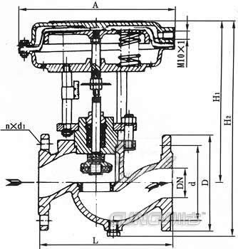 切斷閥采用多彈簧執(zhí)行機(jī)構(gòu)與調(diào)節(jié)機(jī)構(gòu)用三根立相連,整個(gè)高度可減小約30%,重量可減輕約30%。