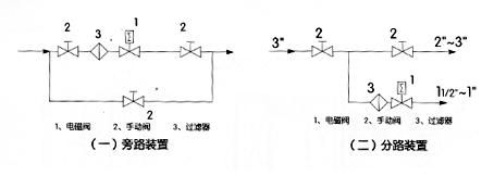 3、在電磁閥發(fā)生故障時,為了及時隔離電磁閥,并保證系統(tǒng)正常運(yùn)行,最好安裝旁路裝置(如圖一)。