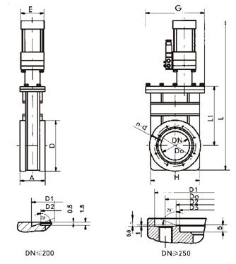Model 型號(hào) | DN | A | H | D | Do | D1 | D2 | D3 | L | L1 | G | E | n-d | 法蘭標(biāo)準(zhǔn) | CCQ-50 | 50 | 60 | 92 | 89 | 72.4 | 61.6 | 55.6 | | 515 | 153 | 220 | 65 | 8-M8 | GB6071 | CCQ-63 | 63 | 65 | 105 | 114 | 92.1 | 82.6 | 76.6 | | 566 | 180 | 220 | 80 | 8-M8 | CCQ-80 | 80 | 65 | 130 | 130 | 110 | 99 | 93 | | 603 | 200 | 220 | 80 | 16-M8 | CCQ-100 | 100 | 70 | 152 | 152 | 130.2 | 120.7 | 114.7 | | 653 | 267 | 220 | 95 | 16-M8 | CCQ-150 | 150 | 70 | 202 | 202 | 181 | 171.5 | 165.5 | | 771 | 350 | 270 | 95 | 20-M8 | CCQ-200 | 200 | 80 | 251 | 253 | 231.8 | 222.3 | 216.6 | | 889 | 424 | 270 | 115 | 24-M8 | CCQ-250 | 250 | 85 | 300 | 314 | 288 | 308 | 275 | 271 | 1127 | 574 | 350 | 140 | 24-M10 | JB5278 | CCQ-300 | 300 | 85 | 352 | 365 | 338 | 353 | 323 | 318 | 1197 | 613 | 420 | 140 | 32-M10 | | CCQ-320 | 320 | 85 | 372 | 385 | 357 | 379 | 344 | 340 | 1197 | 613 | 440 | 140 | 36-M10 | JB5278 | CCQ-400 | 400 | 110 | 456 | 497 | 454 | 480 | 440 | 436 | 1666 | 810 | 536 | 180 | 36-M12 | CCQ-500 | 500 | 135 | 595 | 590 | 555 | 580 | 540 | 536 | 1835 | 870 | 640 | 220 | 40-M12 | CCQ-630 | 630 | 135 | 690 | 700 | 658 | 680 | 639 | 635 | 1930 | 960 | 780 | 280 | 40-M16 | CCQ-800 | 800 | 150 | 880 | 890 | 855 | 880 | 835 | 831 | 2200 | 1100 | 950 | 350 | 60-M16 |